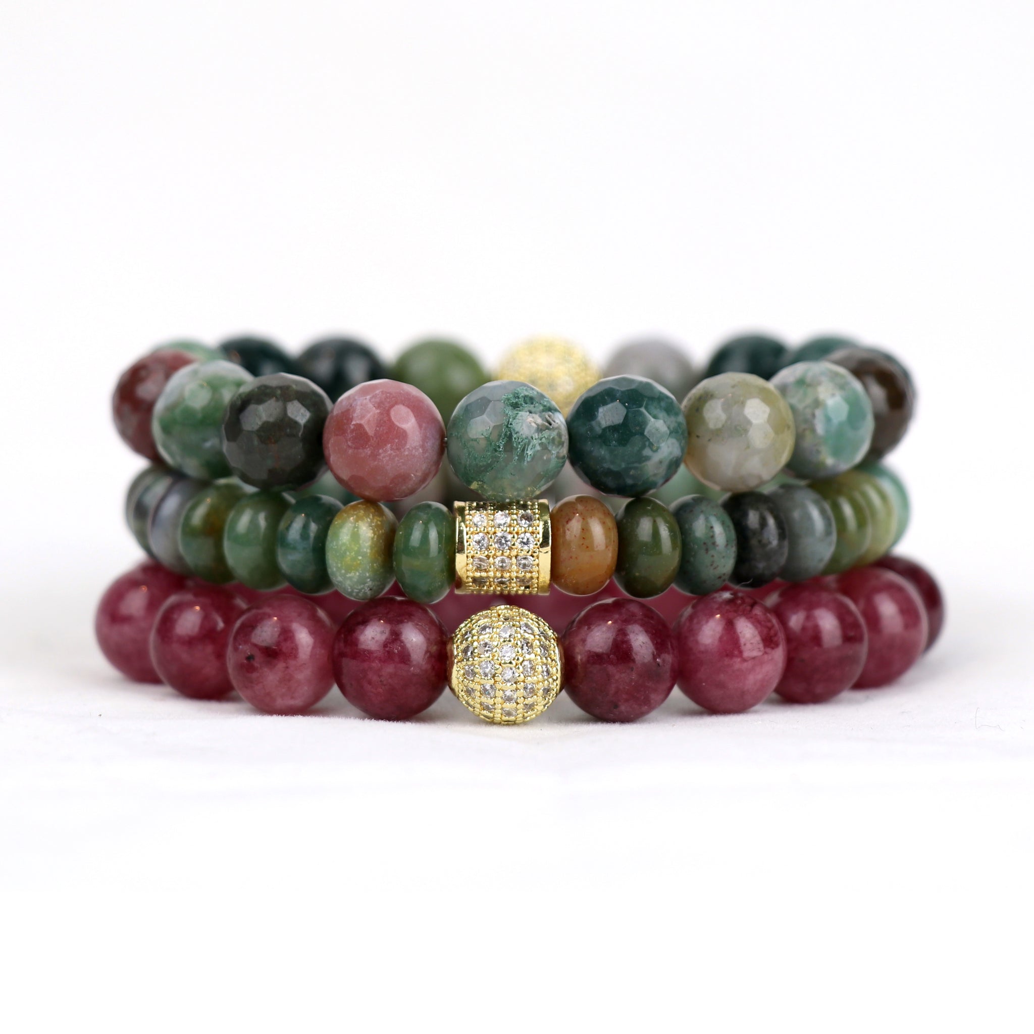 A quiet evening wrapped in evergreen and wine—soft moss greens, deep garnet reds, and a little gold that catches the candlelight. This collection feels like a slow pour and a long exhale: vineyard walks, pine on the breeze, cheeks warm from laughter. Each stack is cozy and romantic without trying—meant for sweater weather dates, kitchen dancing, and “stay a little longer.” Wear it when you want your everyday to feel a touch more tender and a touch more magical.