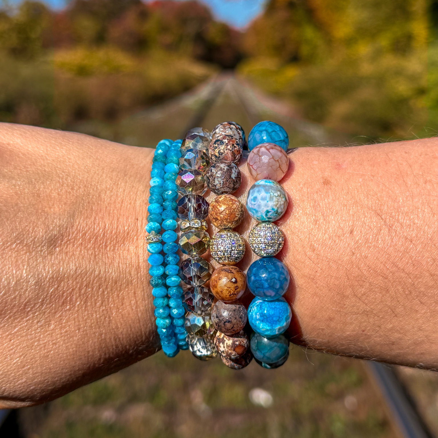 Step into the unknown and follow where the night sky leads. This collection is a delicate dance between grounding earth tones and luminous shimmer — a meeting of ancient mystery and otherworldly light. Each stack feels like a talisman, guiding you as if along a moonlit trail, whispering of transformation and the beauty found in hidden places.