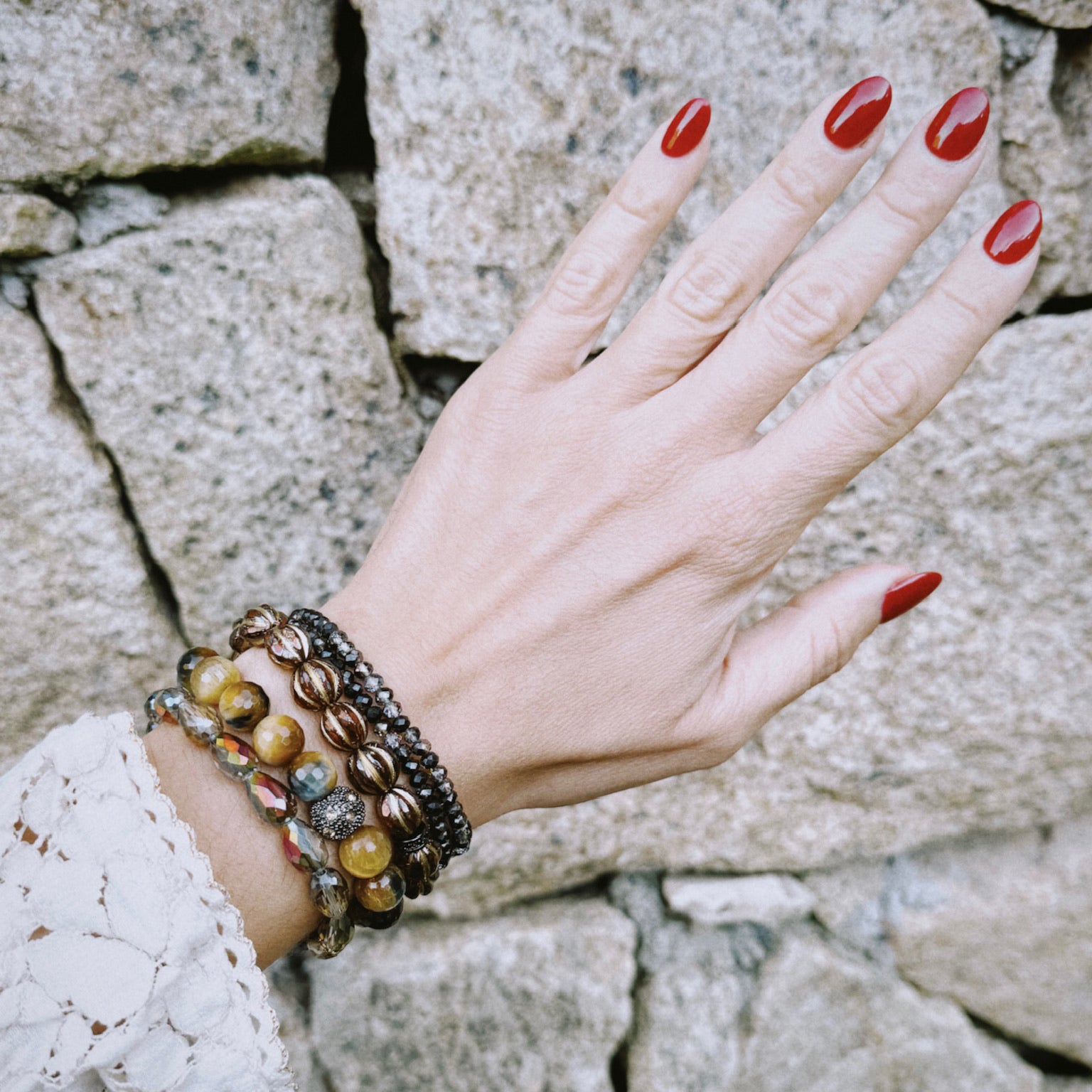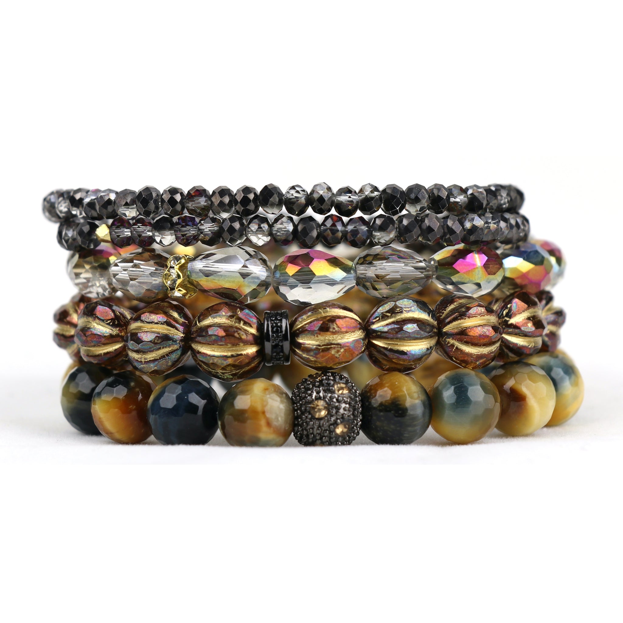 Inspired by the dreamy verse of Lewis Carroll, this collection captures the shimmer of imagination and the warmth of sunlit hours. Each bracelet feels like a story told in glints of gold, smoky quartz, and shifting iridescence — where daydreams linger and reality softens. The Golden Afternoon Collection is for those who chase beauty in quiet moments and believe in a touch of magic between light and shadow.