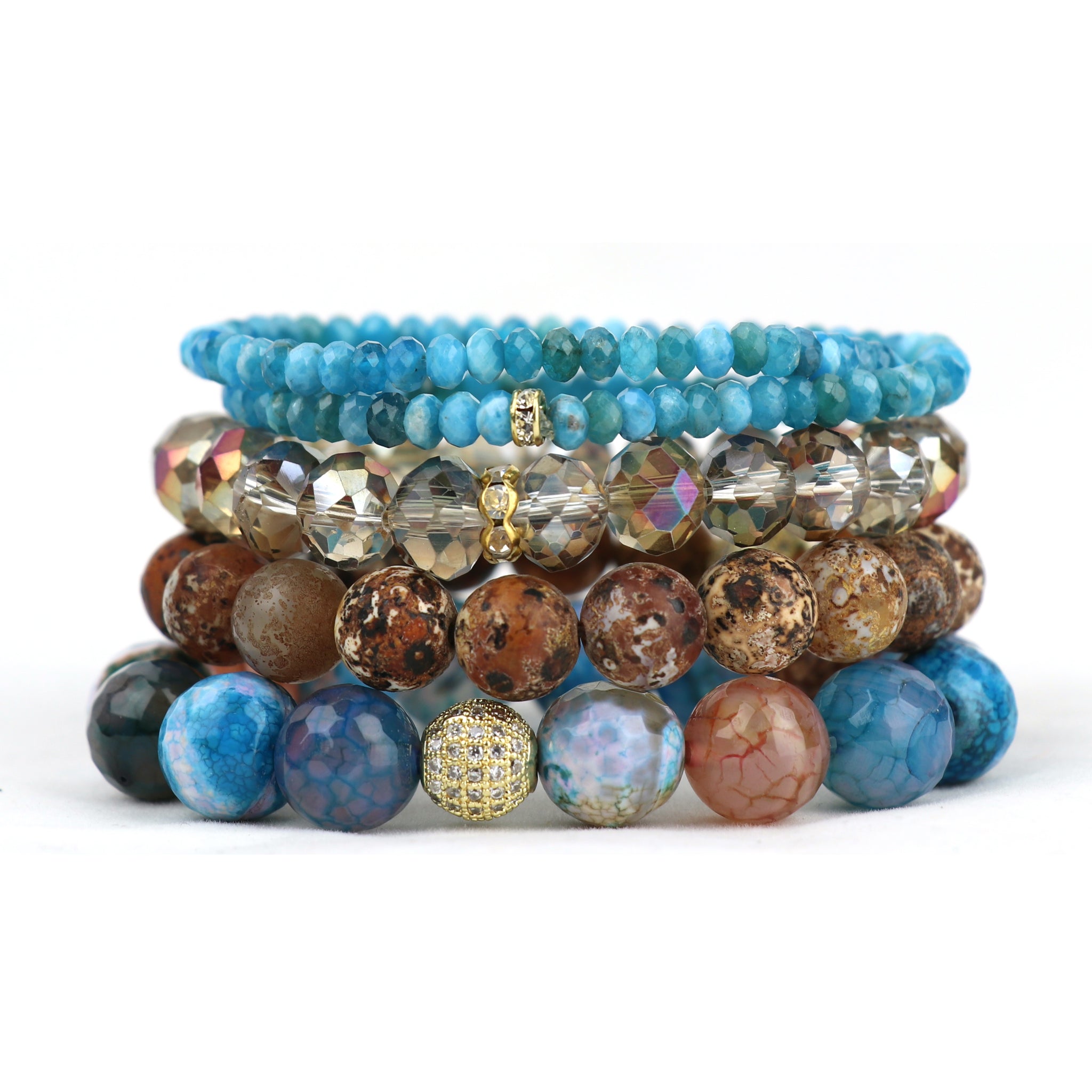 Step into the unknown and follow where the night sky leads. This collection is a delicate dance between grounding earth tones and luminous shimmer — a meeting of ancient mystery and otherworldly light. Each stack feels like a talisman, guiding you as if along a moonlit trail, whispering of transformation and the beauty found in hidden places.